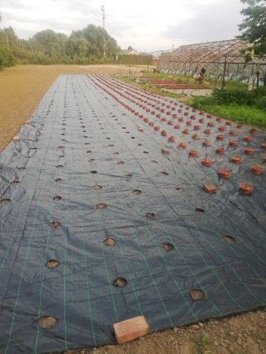 Gruba i mocna AGROTKANINA z filtrem UV o wysokiej gramaturze 95g/m2 z gotowymi otworami pod sadzonki truskwek, ogórków, sałtaty, pomiadorów i innych.