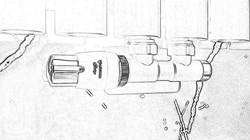 Zawór lewy jest skierowany głowicą w lewą stronę. Zasilanie tego zaworu wodą powinno być z prawej rury, a powrót z lewej.