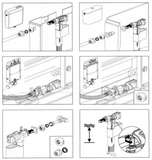 - regulowana ilość wody spłukującej poprzez płynnie regulowany pływak, wraz z teleskopową rurą doprowadzającą,