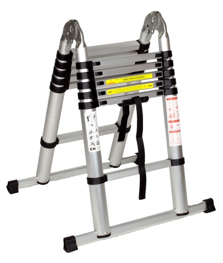 Aby rozstawić, rozłożyć całkowicie bądź złożyć drabinę, wystarczy odblokować oba zawiasy. Nie wymaga to użycia siły.