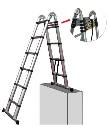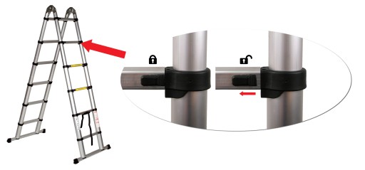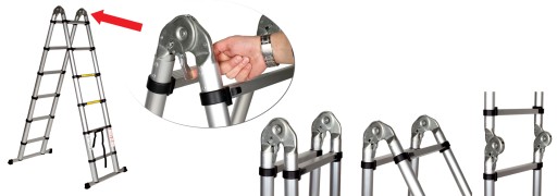 Posiada funkcję blokady nierozłożonych szczebli, co umożliwia ustawienie i bezpieczne korzystanie z drabiny np. na schodach.