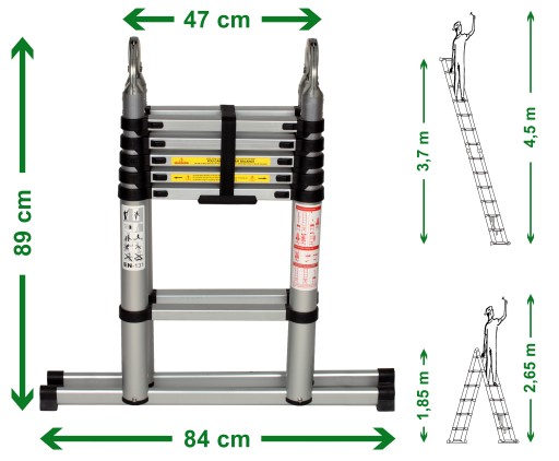 W tej pozycji drabina ma szerokie zastosowanie np. przy pracach w domu, w ogrodzie lub wszystkich innych miejscach, w których brak jest możliwości jej oparcia.
