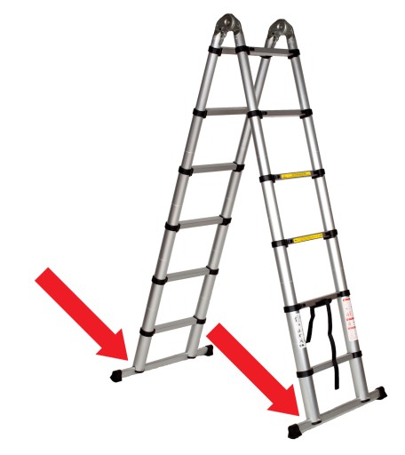 Szerokie podpory na obu końcach drabiny zapewniają stabilne ustawienie.