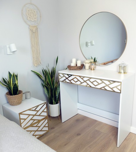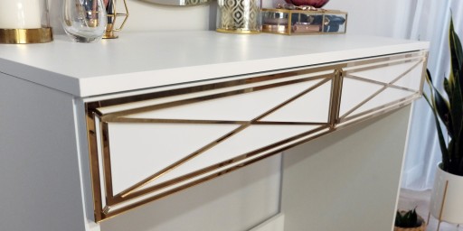 TOALETKA podsiada lustrzany dekor na froncie szuflady.