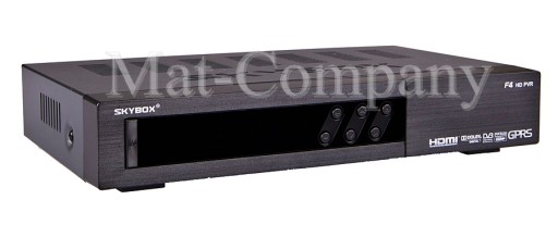 Tuner Skybox F4 FullHD PVR GPRS jest urządzeniem satelitarnym odbierającym programy zarówno standardowej (SD) jak i wysokiej rozdzielczości (HD).Odbiornik został zbudowany w oparciu o dwurdzeniowy procesor ALI3601HD o taktowaniu 400 MHz Jest wyposażony w czytnik kart kodowych. Oprogramowanie na bazie Linux pozwala używać tuner podobnie jak model DM800.