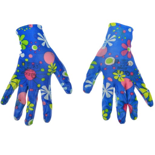 Wysokiej jakości damskie rękawiczki ogrodowe wykonane z poliestru powlekanego nitrylem. Doskonale chronią dłonie przed zabrudzeniem.