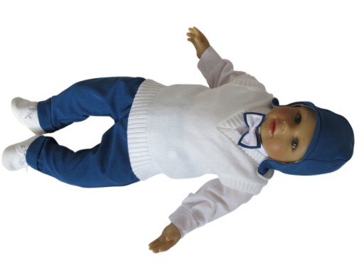 - SPODNIE NIEBIESKIE - USZYTE Z TKANINY GARNITUROWEJ ( W DELIKATNĄ KRATECZKĘ) , WYGODNE W PASIE WSZYTA GUMECZKA.
