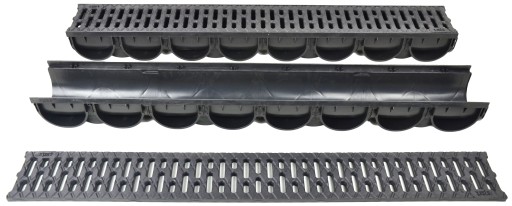Korytka plastikowe z rusztem plastikowym do wykonywania odpływów wody (odwodnień) , w ogrodzie, garażu, na przydomowych podjazdach i wszystkich innych miejscach gdzie nie występuję ciężki ruch kołowy. Lekka i wytrzymała konstrukcja ułatwia montaż i transport.