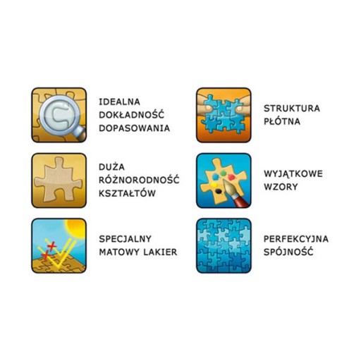 IDEALNA DOKŁADNOŚĆ DOPASOWANIA – dzięki innowacyjnej metodzie produkcji, w której używane są wyjątkowo cienkie wykrojniki, puzzle są do siebie idealnie dopasowane.