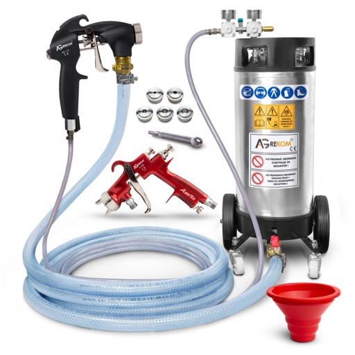 - 10 m węża zbrojonego z okuciami do podłączania powietrza w pistoletach,