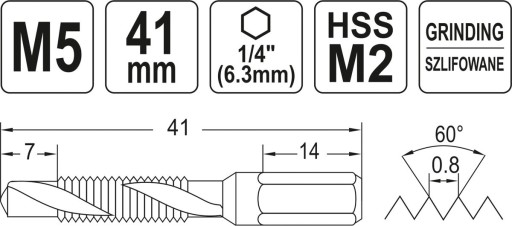 WIERTŁO-GWINTOWNIK M5 HEX