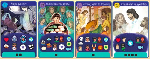 Teraz skarb znajduje się w Twoich rękach. Masz przed sobą piękne, wielobarwne karty ze scenami z Ewangelii, a także obrazki i słowa z Biblii. W swojej turze decydujesz, którą kostką rzucić i które dobrać karty. Zrób to w taki sposób, by utworzyć najwyżej punktowane kolekcje.