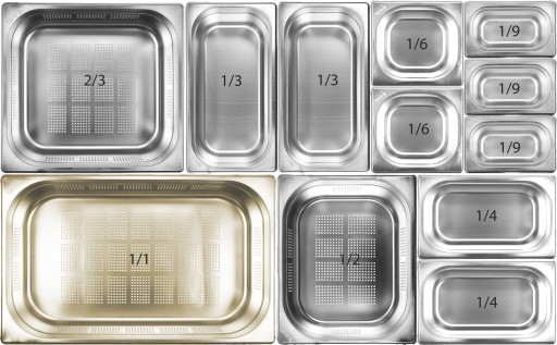 Wymiary pojemników zgodne są z normą GASTRO NORM PN-EN 631-1:1996, co oznacza, że ich wymiary są dokładnie określone: