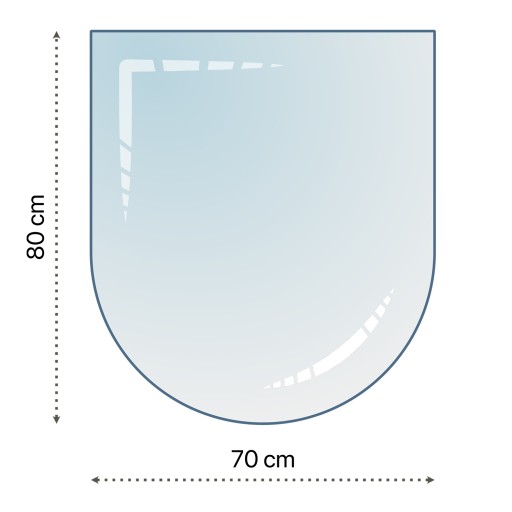 Szyba hartowana, podstawa pod piec zaokrąglona. Wymiary 80 x 70 cm