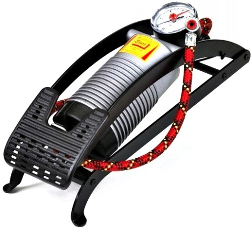 Najbardziej popularna, ciesząca się ogólnym uznaniem pompka nożna z manometrem.
