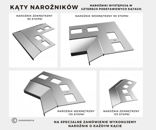 Na życzenie klienta wykonujemy narożniki w każdym kolorze dostępnym we wzorniku kolorów RAL dopłata do koloru zleconego na zamówienie 20%.