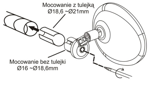 - możliwość montażu przy kierownicach o średnicy otworu wewnętrznego od 16 do 21 mm.