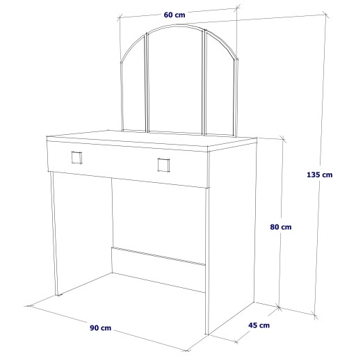 - Wysokość: 80 cm (wraz z lustrem: 135 cm)