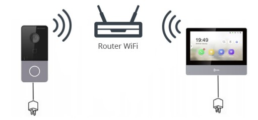 Monitor oraz panel zewnętrzny wyposażone są w moduły WiFi, dzięki czemu zestaw można zastosować nawet gdy nie posiadamy okablowania. Jedyną koniecznością jest zapewnienie zasilania tych elementów.