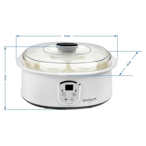 - Możliwość regulacji temperatury - precyzyjny regulator temperatury umożliwia ustawienie odpowiedniej temperatury dojrzewania jogurtu czy też kefiru w zakresie 20-60°C oraz kontrolę procesu.