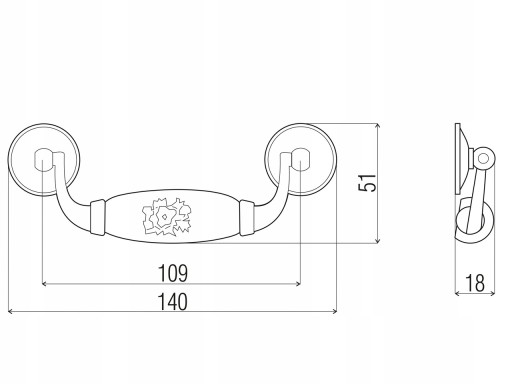 OZDOBNY UCHWYT MEBLOWY, KOŁATKA Z PORCELANĄ