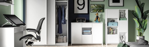 Nowoczesne, proste i funkcjonalna szafa idealne do gabinetu oraz salonu.