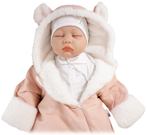 Krój: Pajacyk z kapturkiem i wesołymi uszkami. Zapinany na wygodny zamek od jednej nóżki pod samą szyję. Na końcu zamka przy szyi materiałowe zabezpieczenie, żeby nie uszczypać buzi dziecku ;-) W rękawkach wywijane rękawiczki.