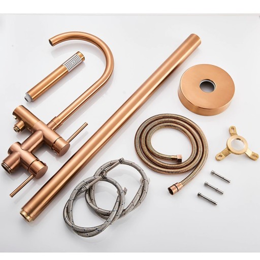 ZESTAW BATERIA WANNOWA WOLNOSTOJĄCA PODŁOGOWA ORAZ ZESTAW NATRYSKOWY PODTYNKOWY W KOLORZE SZCZOTKOWANEGO RÓŻOWEGO ZŁOTA
