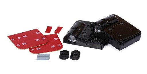 A. Przyklejamy projektory do wewnętrznej części drzwi za pomocą dołączonych podkładek samoprzylepnych