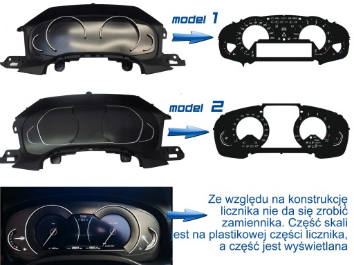 Tarcze do licznika BMW X3 G01, Serii 3 G20, G21 - ZAMIENNIK TARCZ LICZNIKA Z MPH NA KM/H od firmy MoMan