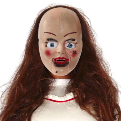 Szukasz przerażającego dodatku do stroju na Halloween? Wygląd tej maski przypominający lalkę z horroru wzbudzi strach w niejednej osobie. W masce znajdują się otwory na oczy i usta żeby można było w niej widzieć i oddychać.