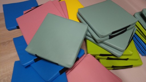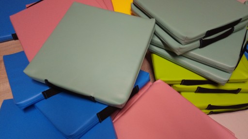 Siedziska posiadają uchwyt z taśmy ułatwiający przenoszenie.