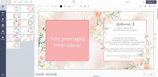 Sami stworzą Państwo swoje wymarzone zaproszenia w naszym kreatorze graficznym.
