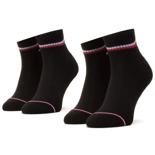 Co powiesz na super stylowy design? Skarpetki zostały zaprojektowane w charakterystycznym stylu marki Tommy Hilfiger. Czarne skarpetki z białym logo to ponadczasowy i elegancki wybór, który pasuje do wielu różnych stylizacji. Dodatkowo pakowanie w dwupak jest wygodne. Skarpetki są w komfortowym zestawie, co zapewnia większą wygodę dla klienta i jest bardziej ekonomiczne.