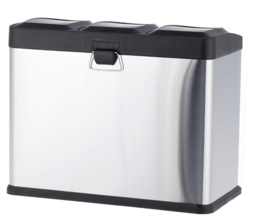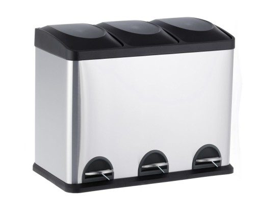 KOSZ PEDAŁOWY DO SEGREGACJI ODPADÓW TRZYKOMOROWY 3 X 15 LITRÓW STAL MATOWA