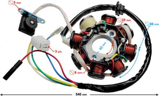 Uniwersalny iskrownik (stojan/stator) do motorowerów z silnikiem FMB - najczęściej spotykany iskrownik w motorowerach 4T