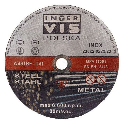 Tarcza do cięcia stali płaska typu A46 wykonana jest z elektrokorundu. Przeznaczona jest do przecinania: stali twardych i miękkich, żeliwa, staliwa, aluminium w postaci prętów, kształtowników, rur, płyt, cienkich profili i blach, oraz do cięcia poprzecznego sztab metalowych i drutów.