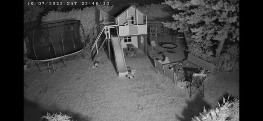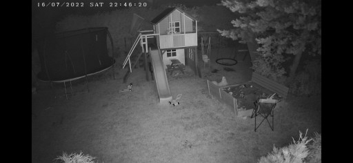 Reflektor działa jak halogen LED tylko że na podczerwień - niczym włączona latarka oświetla w nocy obserwowany obszar. Na zdjęciu przykład z włączonym oświetlaczem trzymanym w ręce. Lepszy efekt byłby przy zamontowaniu oświetlacza wyżej tak jak normalny halogen. Reflektor dla lepszego efektu może być zamontowany miedzy kamerami, bądź praktycznie w dowolnym miejscu. Na reflektorze będą tylko widoczne czerwone diody, podobnie jak w kamerach.