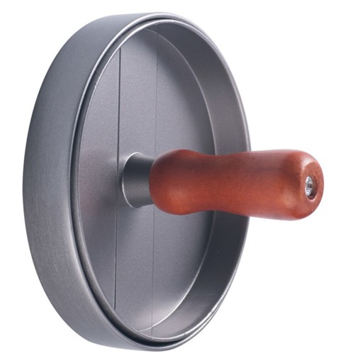 Nowoczesna i elegancka aluminiowa prasa do robienia hamburgerów. Idealnie nadaje się do uzyskania odpowiedniej formy kotleta, który będzie w każdym miejscu tej samej grubości dzięki czemu będzie równomiernie upieczony.