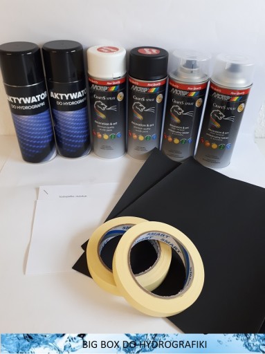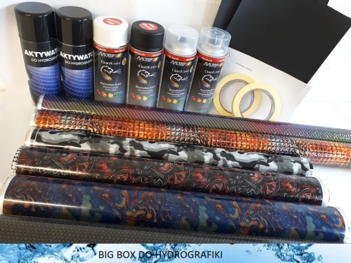Big box do hydrografiki idealny dla osób rozpoczynających swoją przygodę z hydrografiką. Znajdziesz w nim wszystko co jest niezbędne do wykonania transferu wodnego. Jedyne co jeszcze potrzebujesz to zbiornik z ciepłą wodą i do dzieła :)