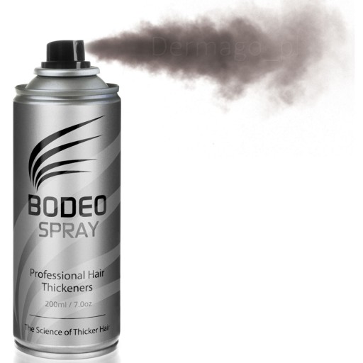 Bodeo Spray to specjalny lakier służący to zagęszczania rzadkich, przerzedzonych włosów.