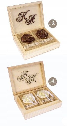 Drewniane pudełko na obrączki, doskonały upominek jak również praktyczna pamiątka dla młodej pary.