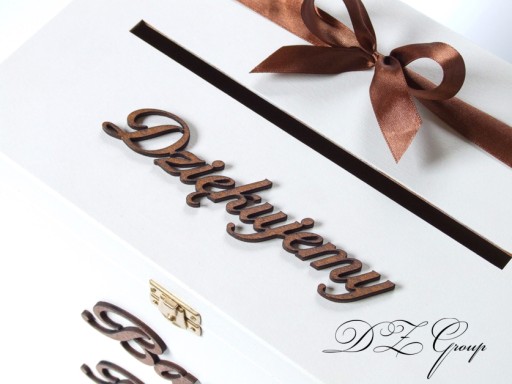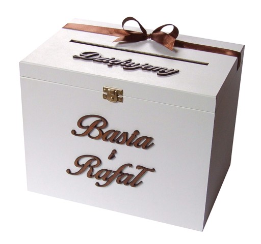 Dzięki bogatej kolorystyce pudełek, napisów 3D oraz wstążek dopasują Państwo pudełko do swoich potrzeb, ślubnej kolorystyki lub innych przedmiotów z naszej oferty.