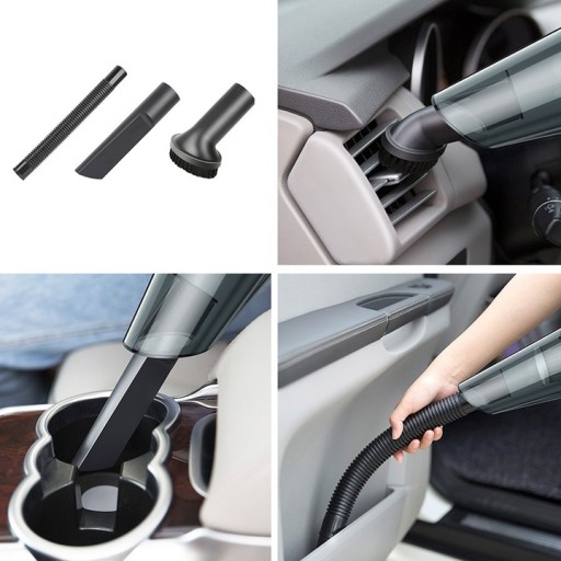 W zestawie znajdują się 3 dysze, dzięki którym może łatwo oczyścić kurz / okruchy / piasek / sierść zwierząt na dywanie, powierzchniach roboczych, fotelikach samochodowych itp.