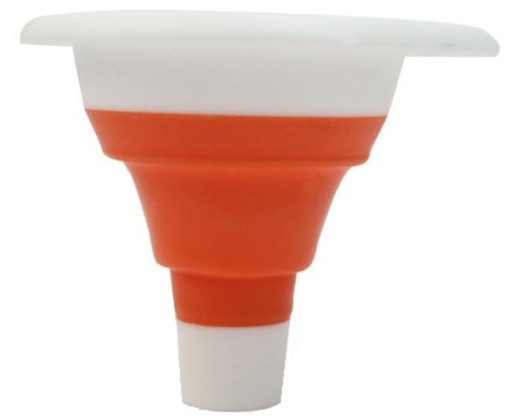 Lejek jest składany, można go złożyć do płaskiego kształtu, dzięki czemu zajmuje bardzo mało miejsca w przechowywaniu. Odpowiedni do kontaktu z żywnością. Dzięki odporności na wysokie temperatury można go myć w zmywarce i używać z gorącymi płynami, bez obawy o odkształcenie się gumy. W górnej części urządzenia znajduję się mały zaczep z otworem do zawieszenia.