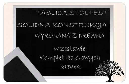 W tablicy zastosowano czarną płytę HDF, rama tablicy wykonana jest z drewna
