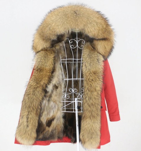 Парка из меха енота серебристо-красная лисица COLORS 44 XXL