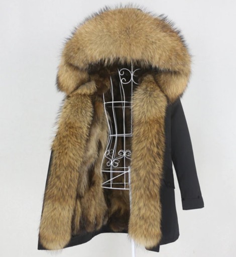 - Kaptur oraz przód zdobiony gęstym i puszystym futrem naturalnym z Jenota lub Lisa Srebrnego (w zależności od koloru)