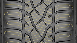 Szerokie rowki poprzeczne w połączeniu z dwoma rowkami obwodowymi zapewniają bezpieczną jazdę na mokrej nawierzchni i skutecznie chronią przed aquaplaningiem.