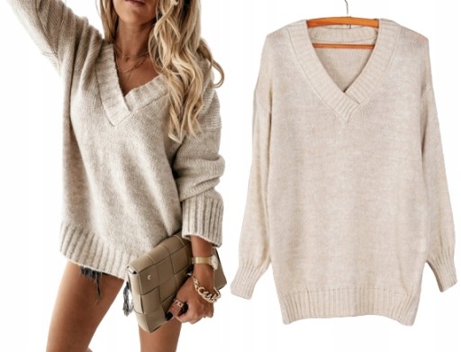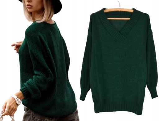 Wyjątkowy sweter na chłodne dni, posiada długi rękaw, dekolt w serek
